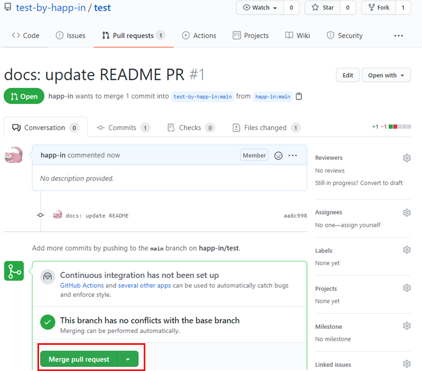 happ-in/test에서 test-by-happ-in/test로 잘 반영된 것을 확인할 수 있습니다.