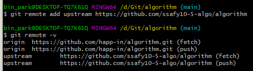 저는 그냥 upstream이 편해서 저걸로 지정했는데 원하는 저장소명으로 해주셔도 됩니다.