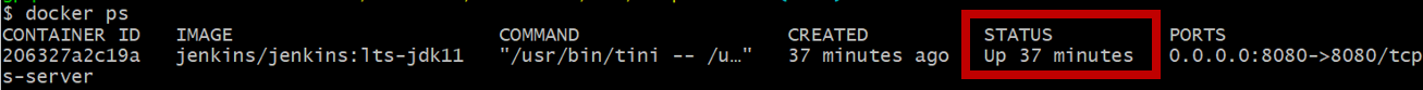 해당 명령어로 실행중인 컨테이너를 확인하는데 이 때, jenkins의 상태가 UP 이어야한다.